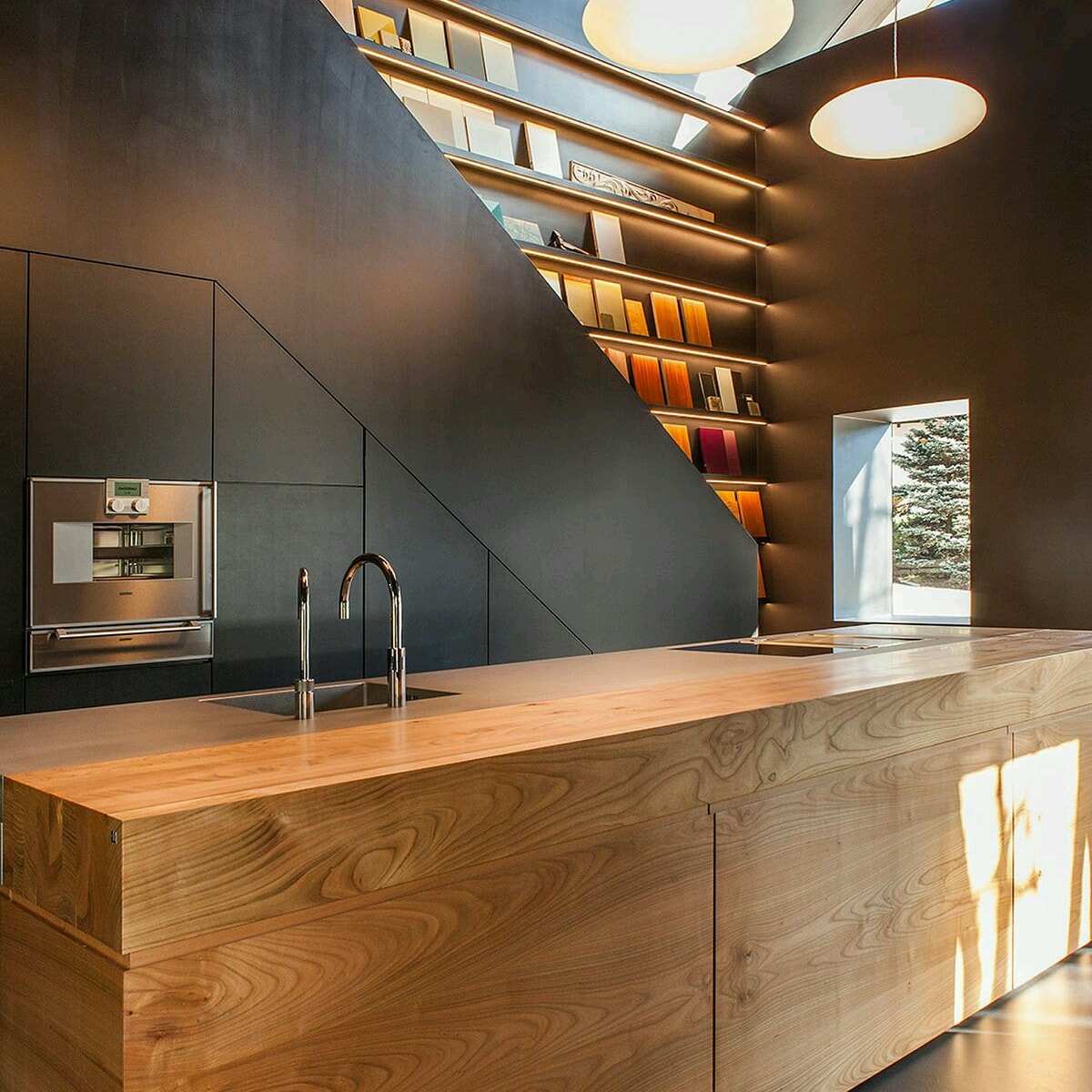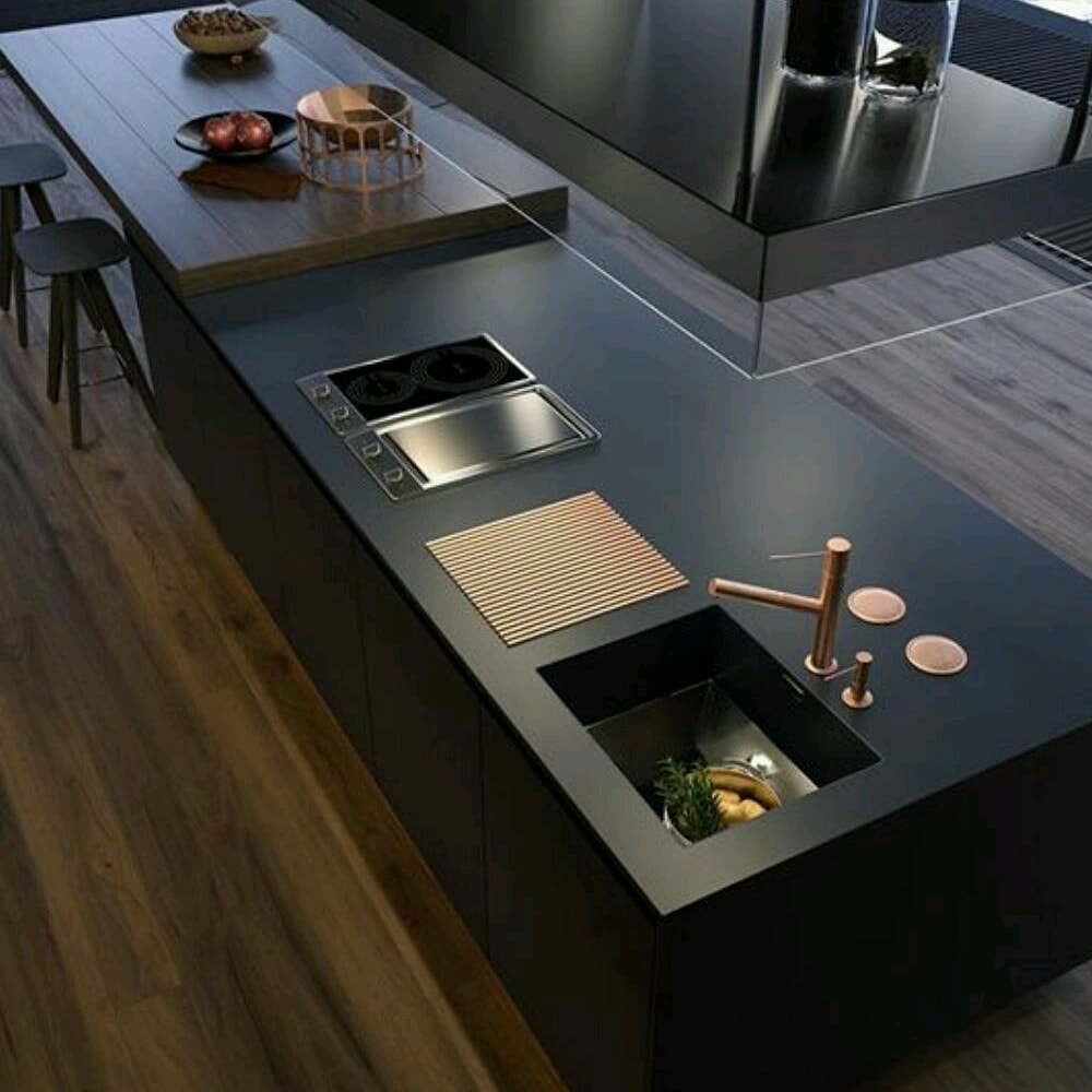 The use of Wood with Black, in Kitchen Architecture, is very much on trend right now.