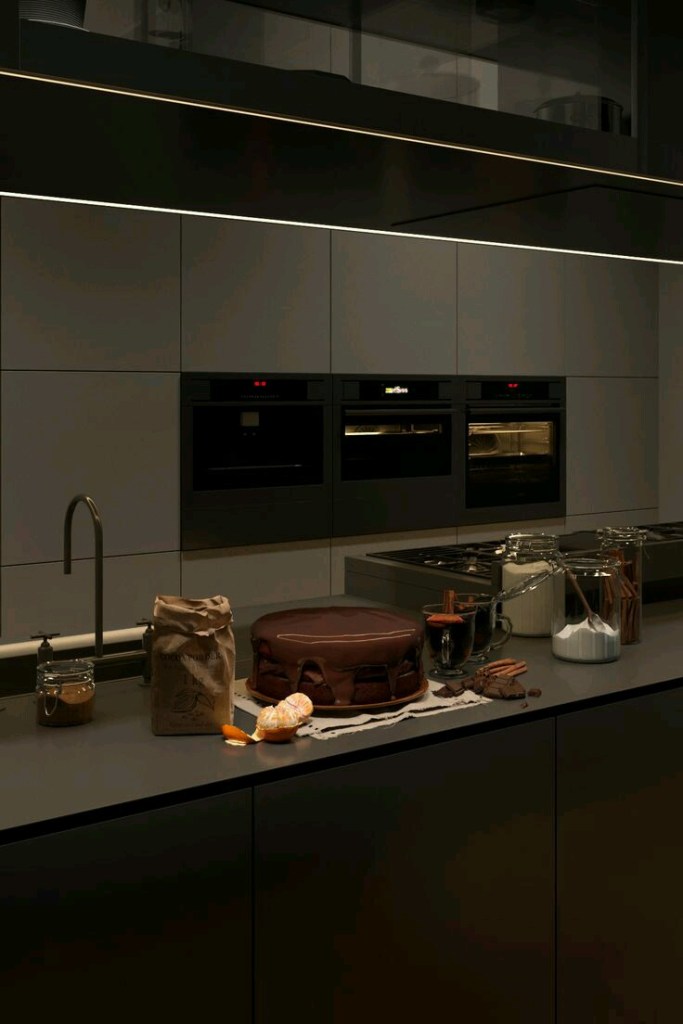 Chocolate mousse, steak with brandy and chocolate sauce, moist chocolate cake and lots of cholocate coloured cushions with bronze and black to complete your lavish interiors.